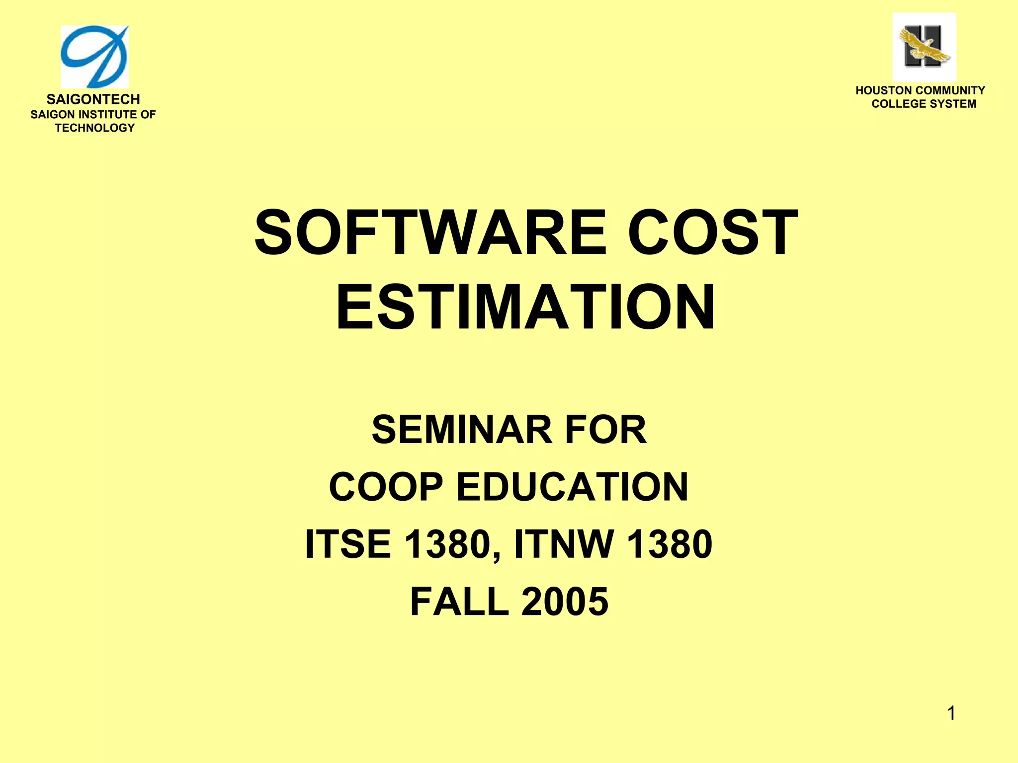 The document discusses objectives and techniques for software cost estimation. It aims to introduce cost and schedule estimation, discuss productivity estimation problems, and describe techniques like expert judgement, analogy, Parkinson's Law, and top-down and bottom-up estimation. It also covers measuring productivity, estimating components like effort costs, and factors that affect productivity.