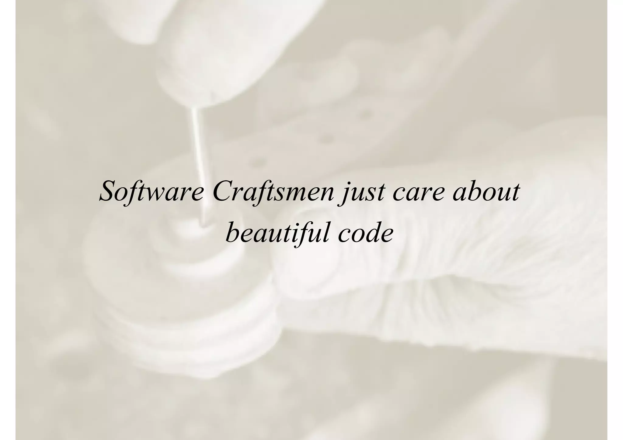 The document discusses the concepts of software craftsmanship and agile software development. It notes that while agile processes focused on individuals and interactions over processes, many agile projects now produce mediocre software. Software craftsmanship aims to raise the bar by focusing on producing well-crafted software through practices like automated testing and test-driven development. It also values developing professional skills and communities through continuous learning and mentorship. The movement seeks to put responsibility and professionalism back into software development through leading by example.