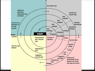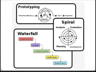 The document provides details about the waterfall model of software development. It discusses the history and key phases of the waterfall model including requirement gathering and analysis, design, coding, testing, and maintenance. It also outlines the advantages and disadvantages of the waterfall model such as it being easy to implement but inflexible to changes. Overall, the document gives an overview of the waterfall model software development lifecycle.