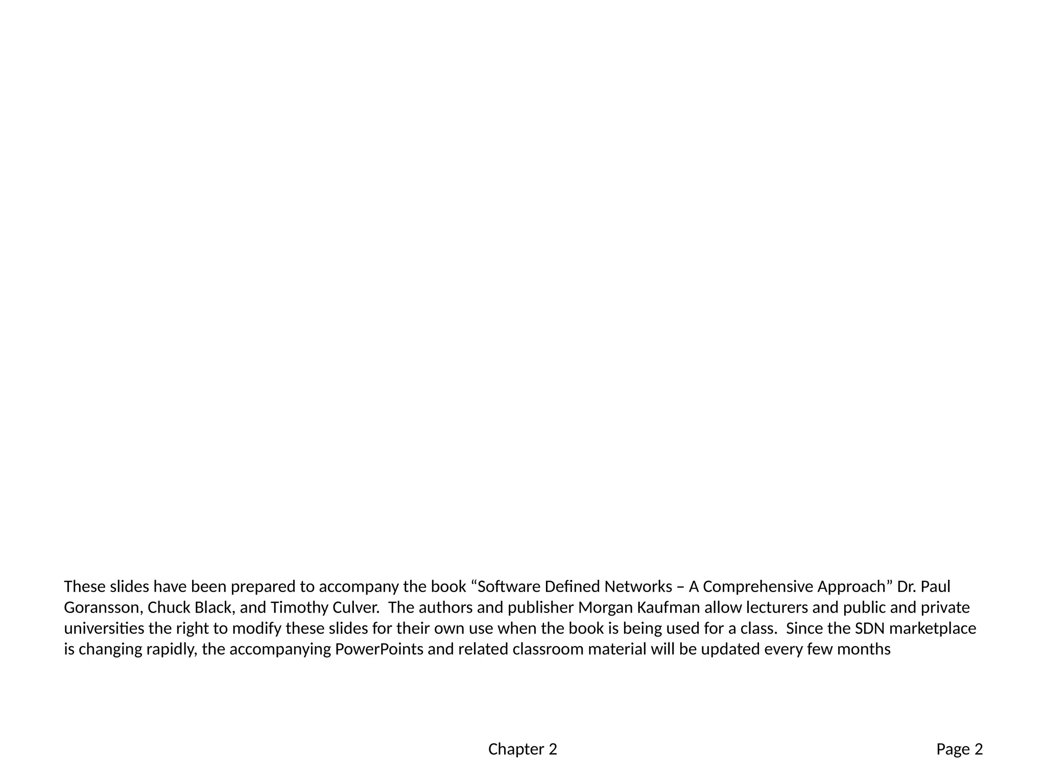 Chapter 2 discusses the evolution of Software Defined Networks (SDN), highlighting changes in switches and control planes to meet increasing network demands. It emphasizes the shift towards centralized control, simplifying network management and reducing operational costs, while fostering innovation through open software environments. The chapter also addresses current inadequacies in networking and the need for scalable, automated solutions in data centers.