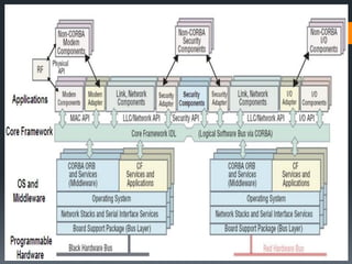 This document discusses software defined radio (SDR) technology. SDR uses software modules running on generic hardware like DSPs and microprocessors to implement radio functions rather than using dedicated hardware components. This allows radios to have their functionality redefined or upgraded through changes to its software. The document outlines the architecture of SDR systems and provides examples of SDR applications in areas like public safety, military uses, and commercial devices. It also discusses benefits such as flexibility and interoperability as well as challenges related to hardware limitations and software complexity. The future scope of SDR is seen to include adaptive radios and cognitive radios that can dynamically change their transmission behavior.