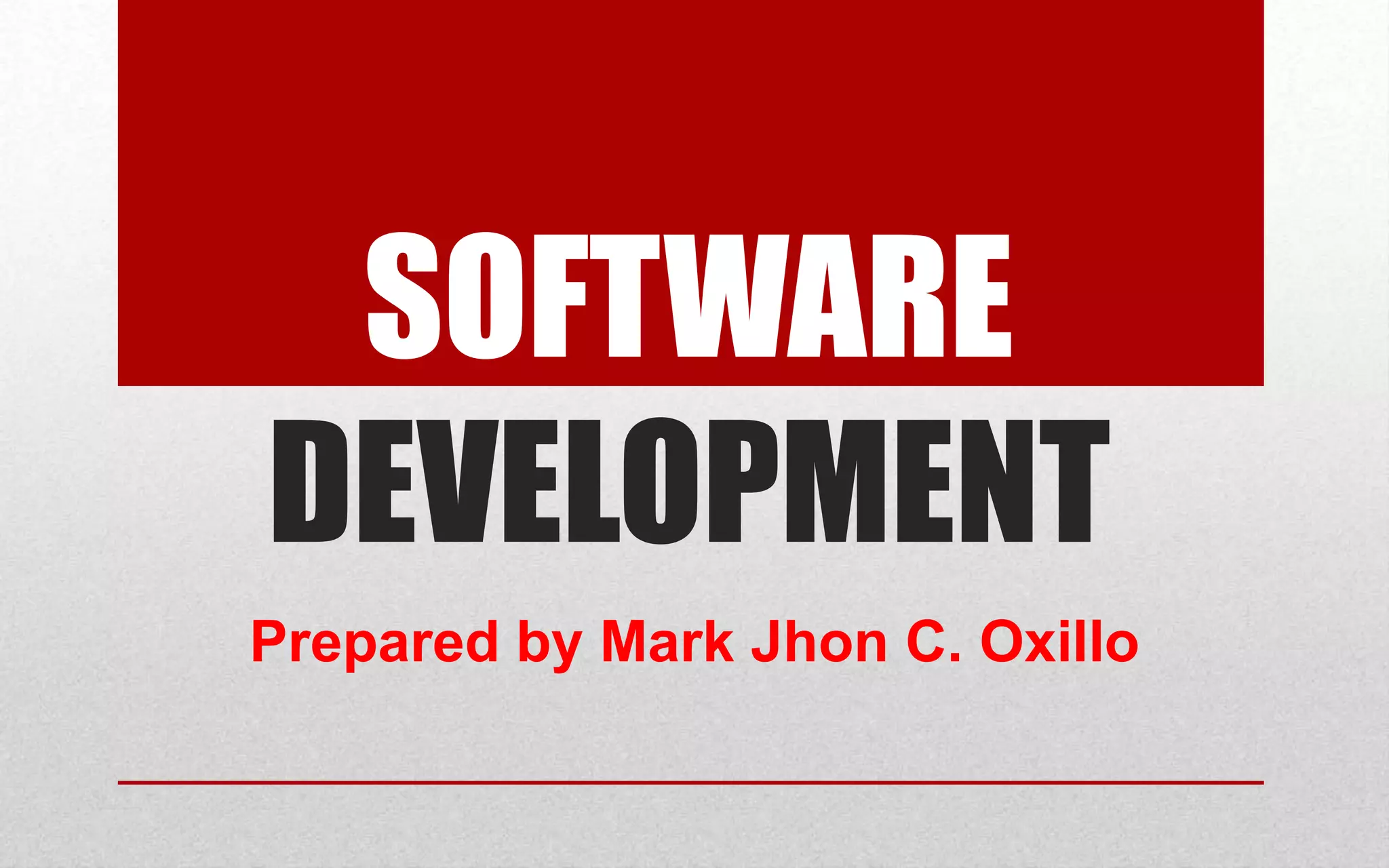 The document discusses key topics in software development including software defects, quality, product liability, development processes, testing methods, maturity models, and quality standards. It describes software development as the process of creating and maintaining applications through conceiving, designing, programming, testing and bug fixing. It also outlines different types of software defects, development roles, methodologies, testing approaches, maturity levels, risks for safety critical systems, and quality management standards like ISO 9001.