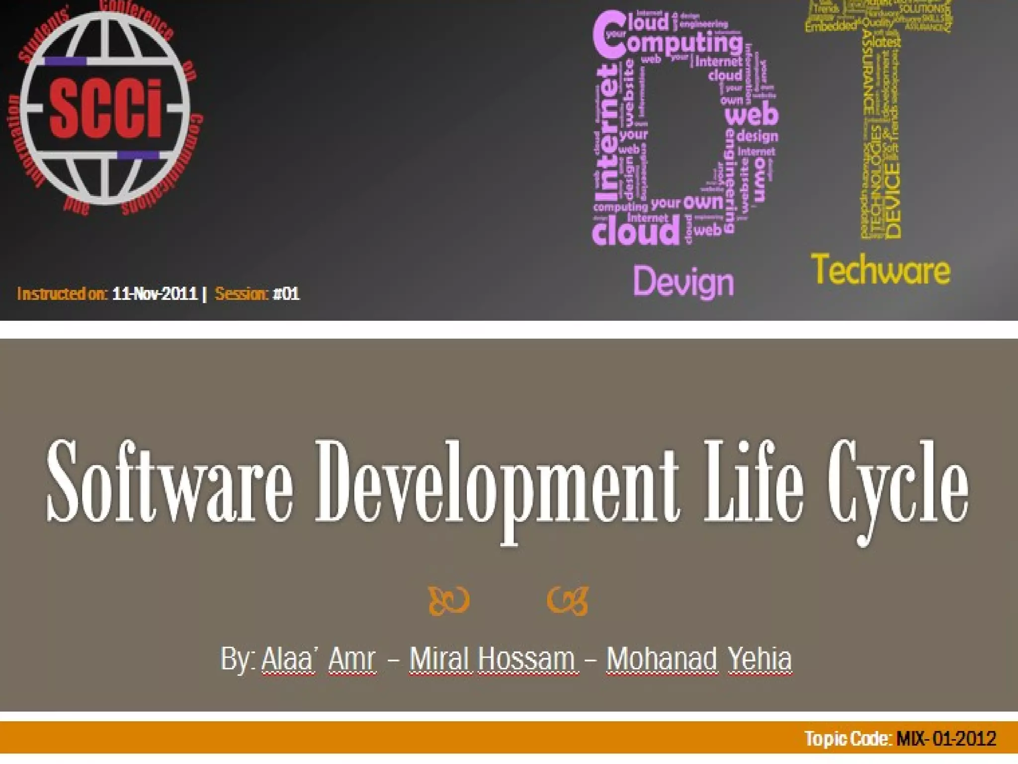 The document discusses different software development life cycle (SDLC) models including the waterfall model, spiral model, and agile model. It provides an overview of each model's phases, advantages, and disadvantages. The waterfall model is the oldest and most widely used. It is linear but can lead to confusion if requirements are unclear. The spiral model is adapted for large, complicated projects and allows for changes and testing at each phase but requires an experienced team. The agile model prioritizes requirements, verification, design, and implementation through iterative development with customer involvement and fixed time periods.