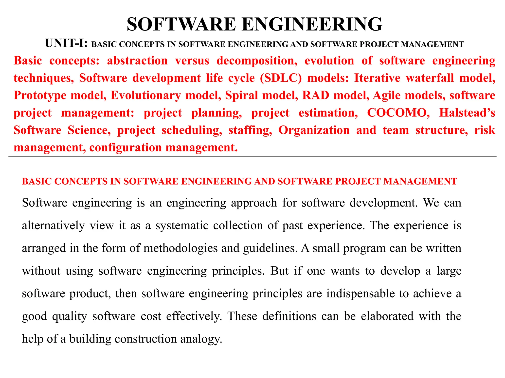 UNIT-I: BASICCONCEPTS IN SOFTWARE ENGINEERING AND SOFTWARE PROJECT MANAGEMENT