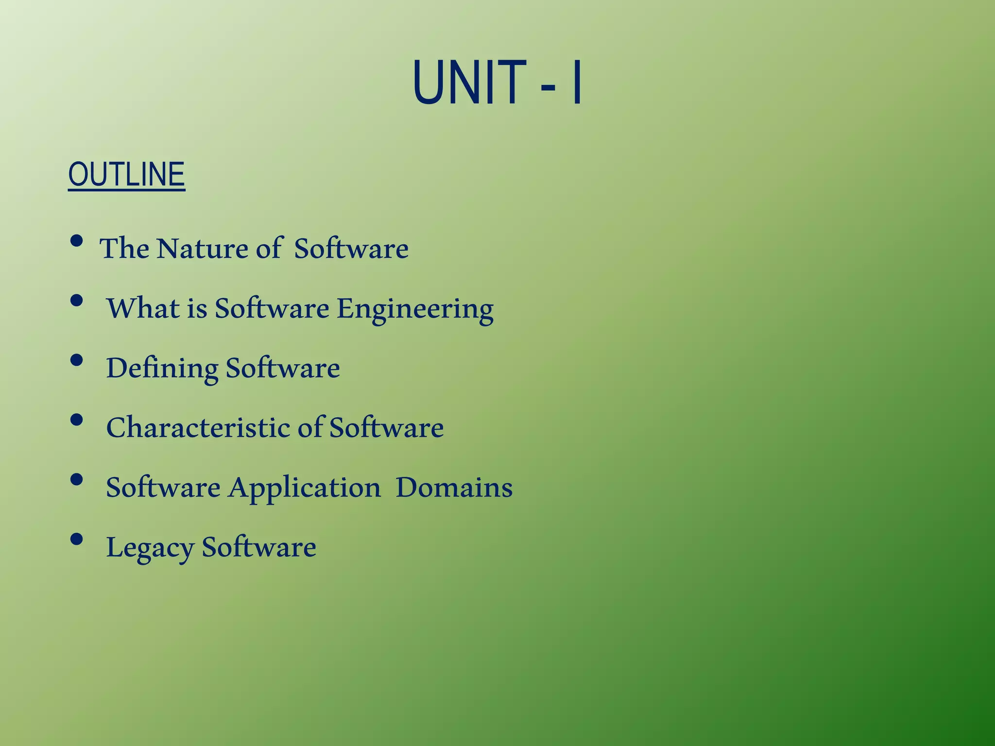 This document provides an overview of software engineering concepts including the nature of software, characteristics of software, software application domains, and legacy software. It defines software engineering as a systematic, disciplined, and quantifiable approach for software development, operation, and maintenance. Some key points include: