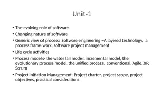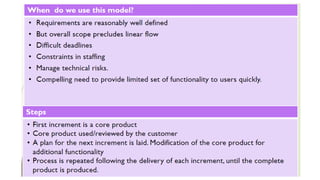 • Process models- the water fall model, incremental model, the
