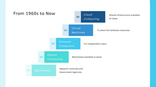 The document discusses the evolution and significance of cloud computing, particularly in response to the COVID-19 pandemic, highlighting its necessity for businesses. It outlines various cloud computing models (IaaS, PaaS, SaaS) and emphasizes security as a crucial aspect, along with a market forecast for cloud services. Additionally, it profiles Amazon Web Services and educational initiatives aimed at preparing students for cloud careers.