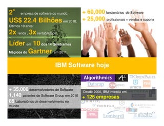 2. Over the last 10 years, IBM Software has doubled its income and tripled its profitability, leading 10 of the 14 magic quadrants in Gartner in 2011.