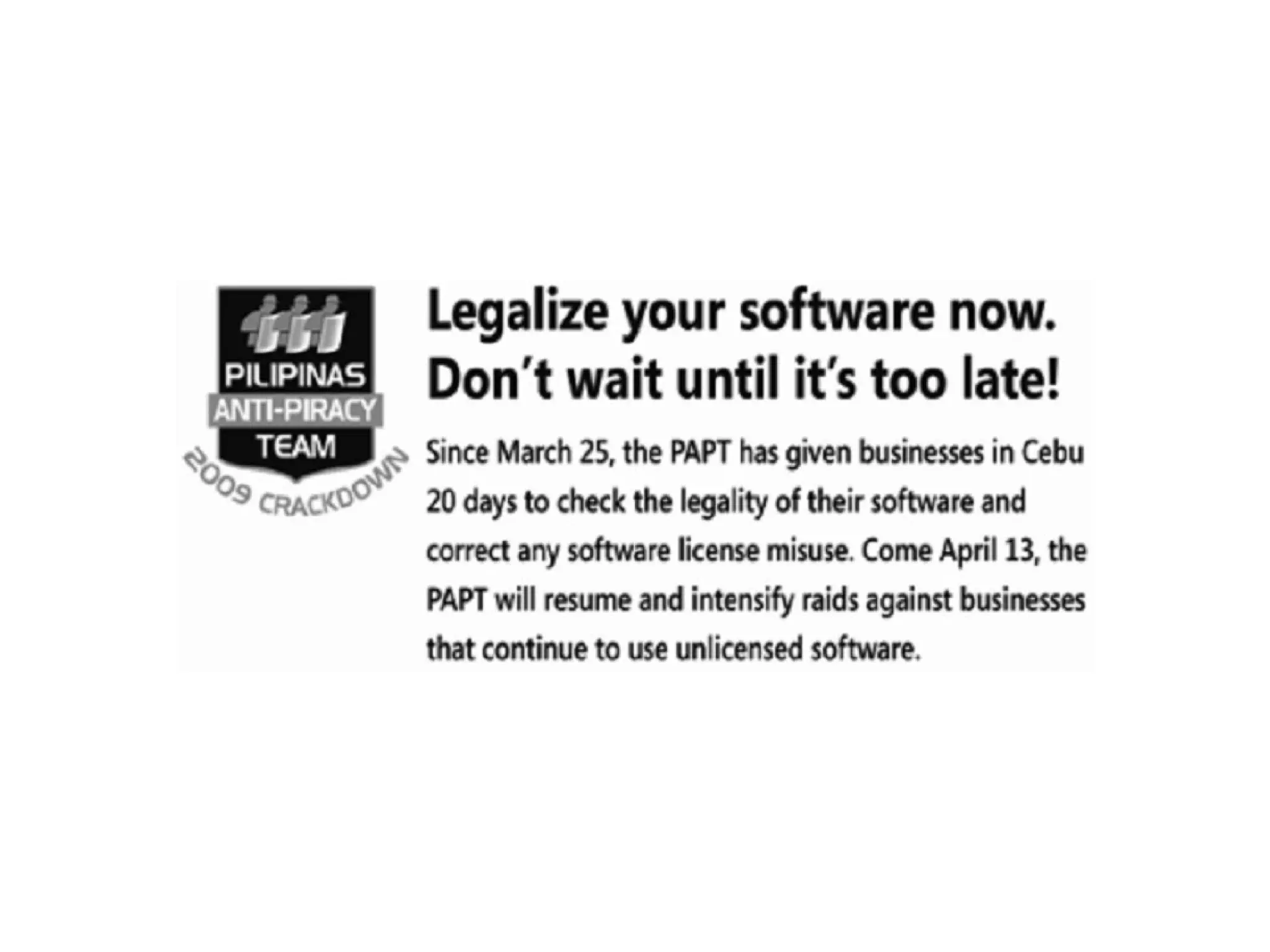 Inthe Philippines, the Business Software Alliance (BSA) together with