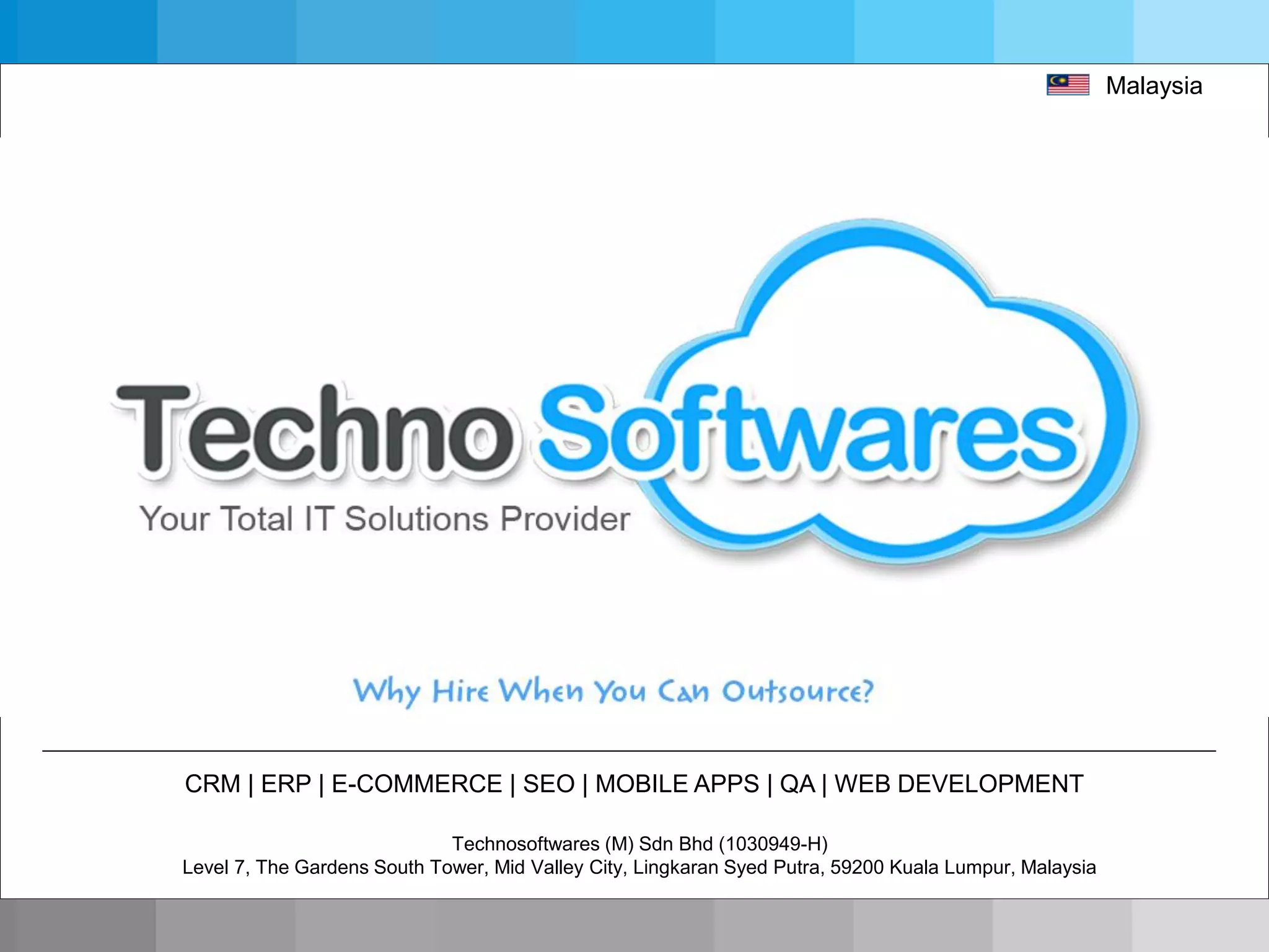 Techno Softwares Malaysia is an IT solutions provider headquartered in Kuala Lumpur, specializing in software development, ERP, CRM systems, and mobile applications, with a commitment to customer satisfaction and 24/7 accessibility. Founded in 2012, it has a team of over 55 programmers and has successfully expanded into markets like Singapore and Japan. The company focuses on customized solutions for various clients, including corporates and startups, while maintaining strict compliance with delivery times and quality assurance.