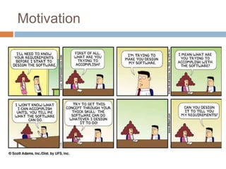 The document discusses several common software development myths. It is written by a group of 7 software engineers. The myths discussed include: 1) that clients know exactly what they want, 2) that requirements are fixed, 3) that quality can't be assessed until a program is running, 4) that adding more people fixes schedule slips, 5) that security is only a cryptography problem, 6) that a tester's only task is to find bugs, 7) that testing can't begin until development is fully complete, and 8) that network defenses alone can provide protection. The document aims to dispel these myths and provide more accurate perspectives.