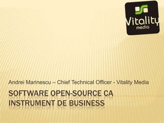 Documentul discută despre software-ul open-source ca instrument de business, evidențiind avantajele și dezavantajele sale utilizate în mod gratuit pentru scopuri comerciale. De asemenea, subliniază importanța comunității de dezvoltatori și riscurile asociate cu securitatea, precum și diverse alternative open-source disponibile pe piață. Se menționează că, deși software-ul open-source poate fi gratuit, acesta poate genera profituri semnificative, exemplificate prin cazuri precum Magento și Mozilla Firefox.