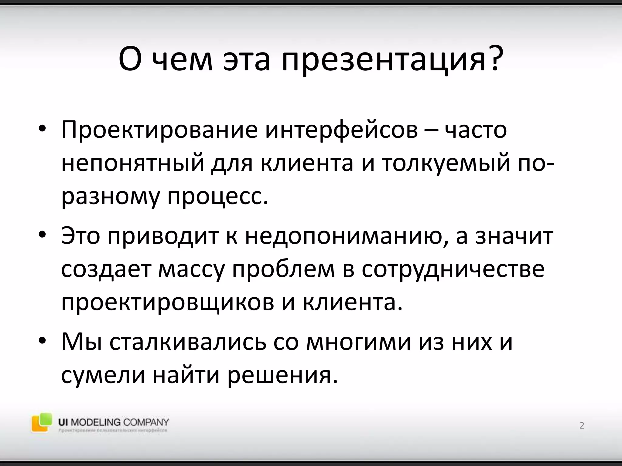 Презентация Юрия Ветрова "Управление ожиданиями от процесса проектирования интерфейсов" с конференции Software People 2009.