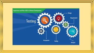 Software quality assurance (QA) is crucial for the success of software development, ensuring that projects meet goals and satisfy client requirements. It encompasses various activities from project inception to implementation, focusing on preventing errors and enhancing user experience. Today, QA is recognized as an essential component rather than an add-on expense, integrating comprehensive testing strategies throughout the software release cycle.