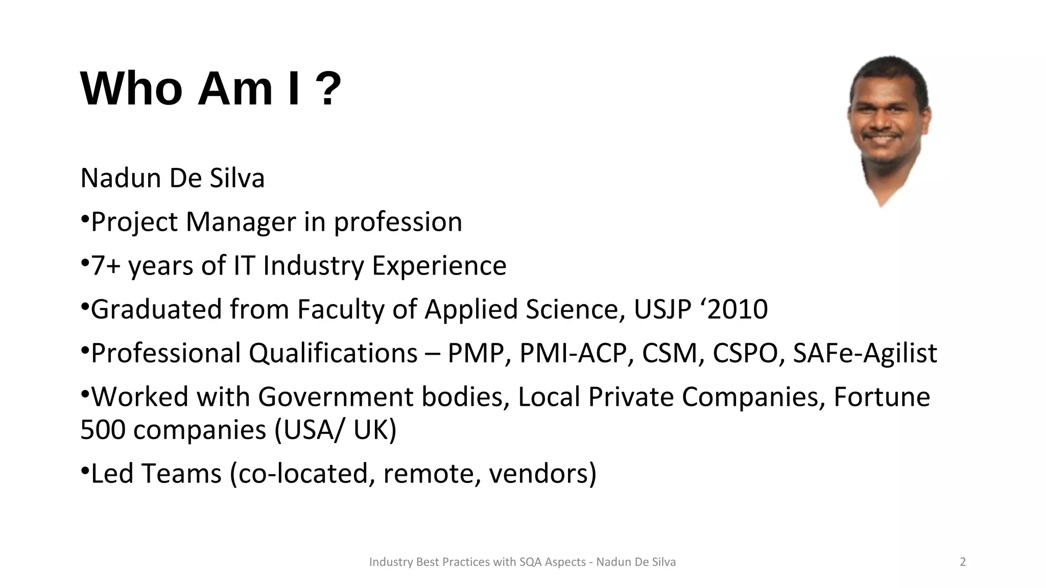 The document discusses best practices for quality assurance (QA) in the software industry. It covers when QA engineers should be involved, how they can contribute, test planning, estimation, case design and execution, defect reporting, data management, and soft skills. The presenter is a project manager with over 7 years experience who will discuss industry standards for QA including requirement analysis, test deliverables, risk assessment, scope, and strategy.