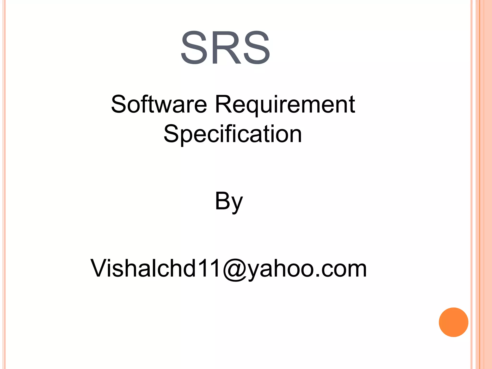 The document discusses requirements analysis, which involves understanding customer needs and expectations for a proposed system. Requirements analysis is necessary to ensure projects align with business goals and specifications. The requirements analysis process includes identifying system boundaries, customers, eliciting requirements through stakeholder interviews, analyzing requirements, documenting requirements in a specification, and managing evolving requirements. An effective software requirements specification establishes agreement between customers and developers on system functionality.