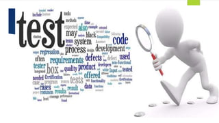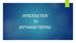 This document provides an introduction to software testing. It defines software testing as a process used to identify correctness, completeness, and quality of computer software. The key points covered include: why software testing is important; who should be involved in testing; when testing should start and stop in the software development lifecycle; the differences between verification and validation; types of errors; types of testing including manual and automation; methods like black box and white box testing; levels of testing from unit to acceptance; and definitions of test plans and test cases.