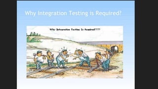 The document discusses various types of software testing. It defines software testing as executing a program to find bugs and ensure it meets requirements. There are different types of tests like unit, integration, system, and acceptance. Unit tests check individual code units work as intended. Integration tests check multiple units work together. System tests check the full application in a production environment. Acceptance tests check the software meets business needs. The document emphasizes the importance of testing for quality, flexibility, and avoiding expensive failures. Thorough testing helps ensure customer satisfaction and business success.