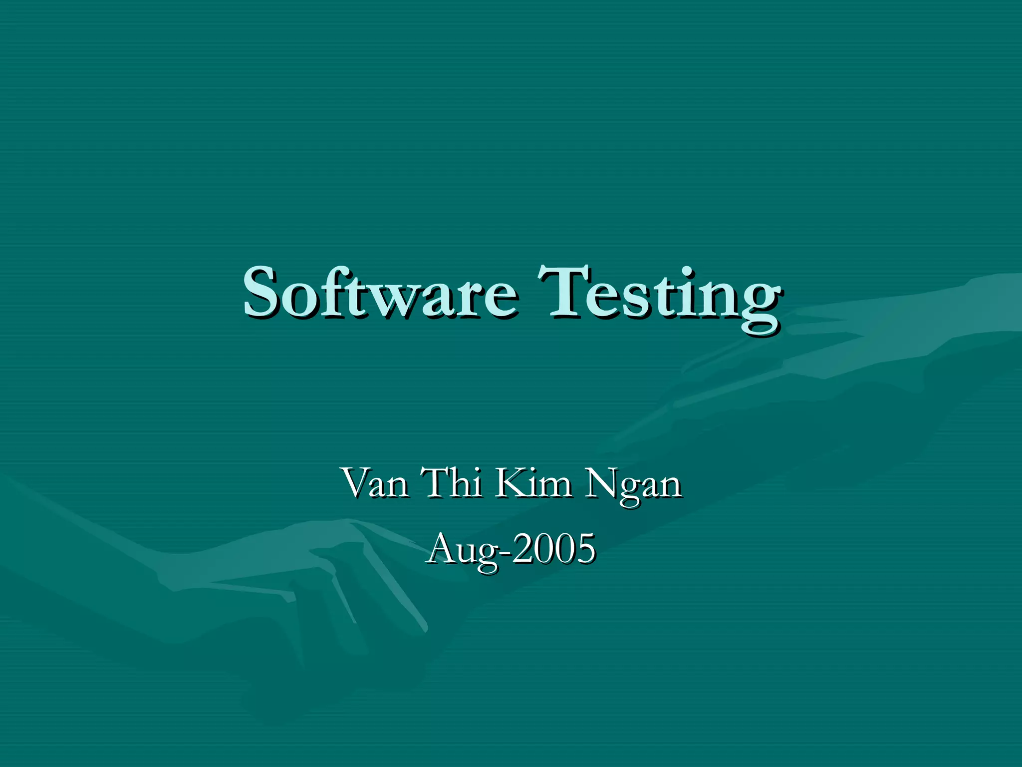 This document discusses software testing and bug management. It defines testing as verifying that a system satisfies requirements through manual or automated means. Testing is necessary because software will have faults, to learn reliability, and avoid expensive failures. Bugs are faults that cause unintended behavior. Bugs go through a lifecycle of being logged, analyzed, assigned, corrected, retested, and closed or accepted. Bug severity ranges from cosmetic to fatal. Bug status tracks whether a bug is error, assigned, pending, tested, or accepted. Bugs are also classified by type such as requirements, structural, data, coding, interface, or test bugs. Bug tracking tools can manage the bug lifecycle.
