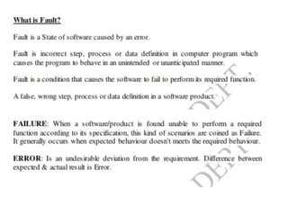 Software Testing ppt which explain about the overview, applications, approaches in detail.