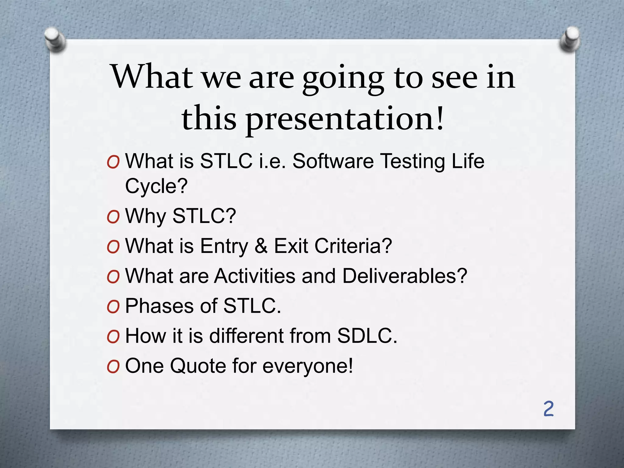 The document describes the phases of the Software Testing Life Cycle (STLC). It discusses the 6 main phases: 1) Requirement Analysis, 2) Test Planning, 3) Test Case Development, 4) Environment Setup, 5) Test Execution, and 6) Test Cycle Closure. Each phase has entry and exit criteria, activities, and deliverables. The STLC is a testing process executed in a systematic, planned manner, following the software development life cycle to ensure quality.