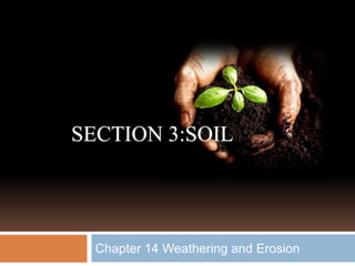 Soil is composed of mineral matter, organic matter, air, and water. The top layer of soil, called topsoil, is a thin and fertile layer that supports most plant growth. Below the topsoil are thicker layers of increasingly less fertile soil. The deepest layer is largely infertile mineral matter.