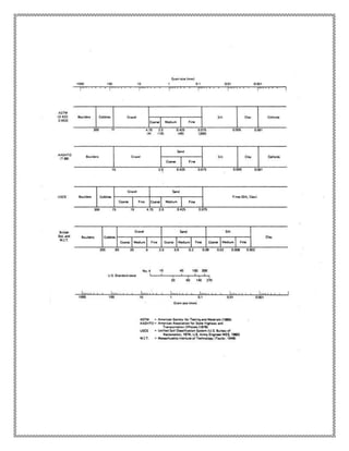 This document provides information on procedures for determining soil classification parameters through laboratory tests. It describes the liquid limit test, plastic limit test, and sieve analysis test. The liquid limit test determines the water content at which a soil behaves as a liquid. The plastic limit test finds the water content where a soil rod crumbles. Sieve analysis involves separating soil into grain sizes to determine classifications. The results of these tests are used to classify soils based on standards like the Unified Soil Classification System.