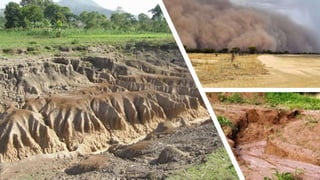 The document discusses soil erosion, its causes, types, and effects. It defines soil erosion as the process by which soil is removed by agents like wind and water. The main causes are identified as deforestation, running water, overgrazing, faulty agriculture practices like improper plowing, over irrigation, and wind. The types of erosion are wind erosion, where soil particles are removed and transported by wind, and water erosion, where rain and runoff remove soil. Key effects listed are loss of arable land, water and air pollution, damage to infrastructure and aquatic systems, and desertification.