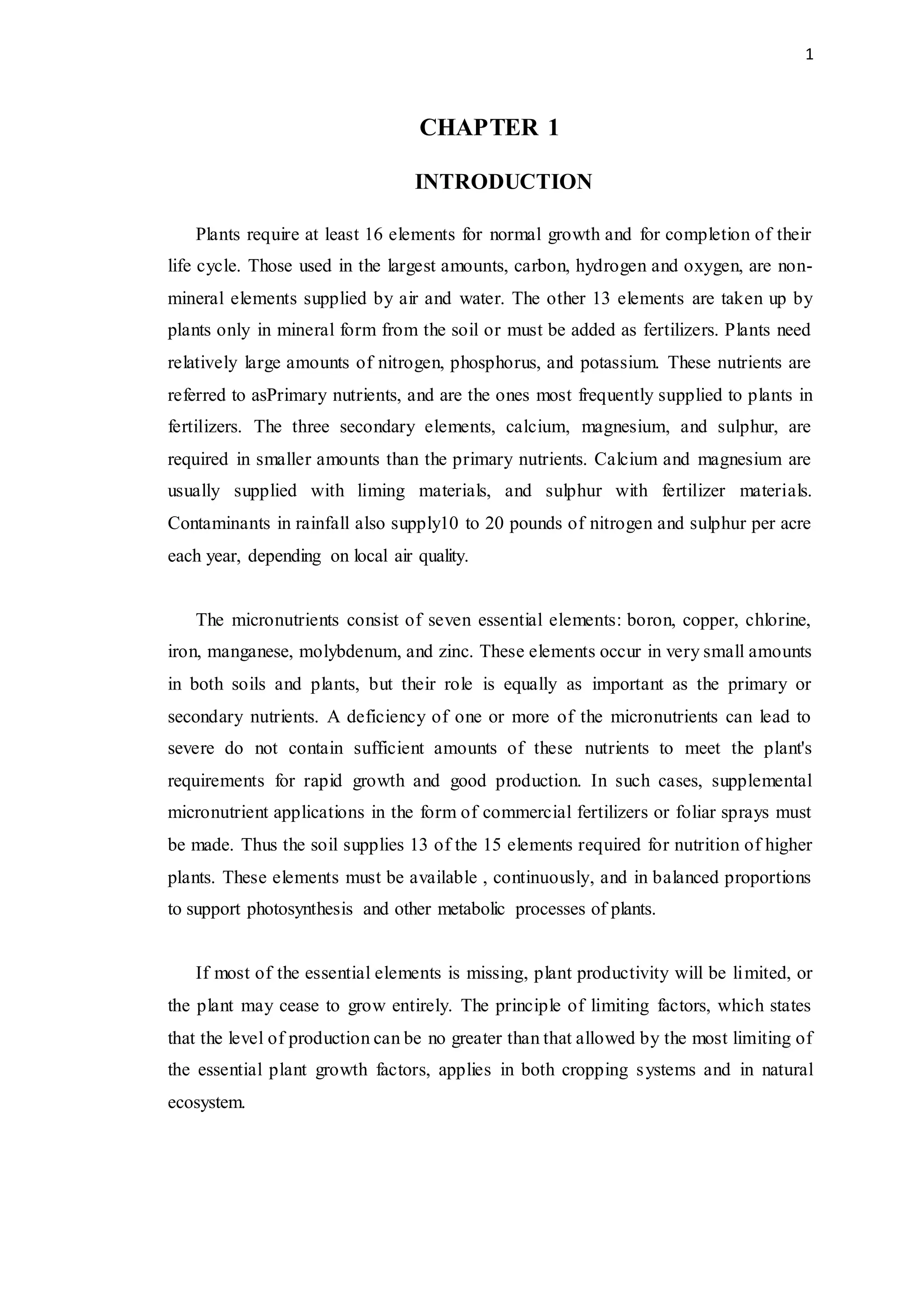 The document discusses the essential nutrient requirements for plant growth, highlighting the roles of primary, secondary, and micronutrients, as well as soil fertility and the impact of fertilizers. It elaborates on various types of fertilizers, their effects on soil life, and the importance of organic versus synthetic options. Additionally, the document introduces a soil fertility testing device utilizing a Raspberry Pi to measure soil temperature and nitrogen content, enhancing agricultural practices.