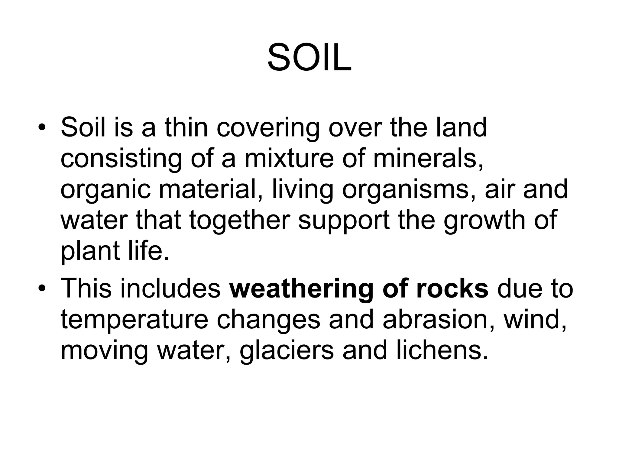 1) Soil takes a long time to form but can degrade rapidly due to human activities like farming, construction, and deforestation which cause soil erosion.