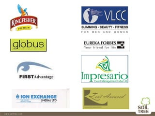 Soil Tree is an experiential marketing company founded in 2009 that provides end-to-end solutions including events, promotions, exhibitions, and retail solutions. They focus on innovative and cost-effective campaigns for brands across India. Some of their clients include HPCL, Panasonic, Kingfisher, MAX, and Eureka Forbes for whom they have organized various events, roadshows, retail activations, and school programs.
