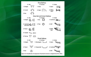 Water control structures can be either temporary or permanent. Temporary structures are only recommended where inexpensive labor and materials are available, as mechanization has reduced their practicality. Permanent structures use hard materials to dissipate water energy and are required where high velocities must be controlled. Common permanent structure types include drop spillways, chutes, pipe spillways, and culverts. The design of permanent structures must ensure adequate capacity to pass design flows and dissipate water energy without erosion.