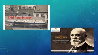 Charles Fritts invented the first working selenium cell in 1883 and installed the world's first rooftop solar array using these cells on a New York City rooftop in 1884, marking the beginnings of solar power innovation. A typical mobile phone charger uses between 0.006 to 0.014 kWh to fully charge a phone, meaning that even charging daily would use only 2-5 kWh per year. Some buses in India have been outfitted with solar chargers to provide power for passengers' mobile devices.