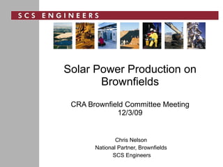The document discusses the potential of solar power production on brownfield sites as a means to address environmental challenges and promote renewable energy. It highlights government initiatives, such as the Brightfields program, which aims to repurpose contaminated lands for solar energy generation, providing economic and sustainability benefits. Key considerations for implementing solar projects on these sites include site selection, engineering challenges, and the advantages of revitalizing underutilized properties.