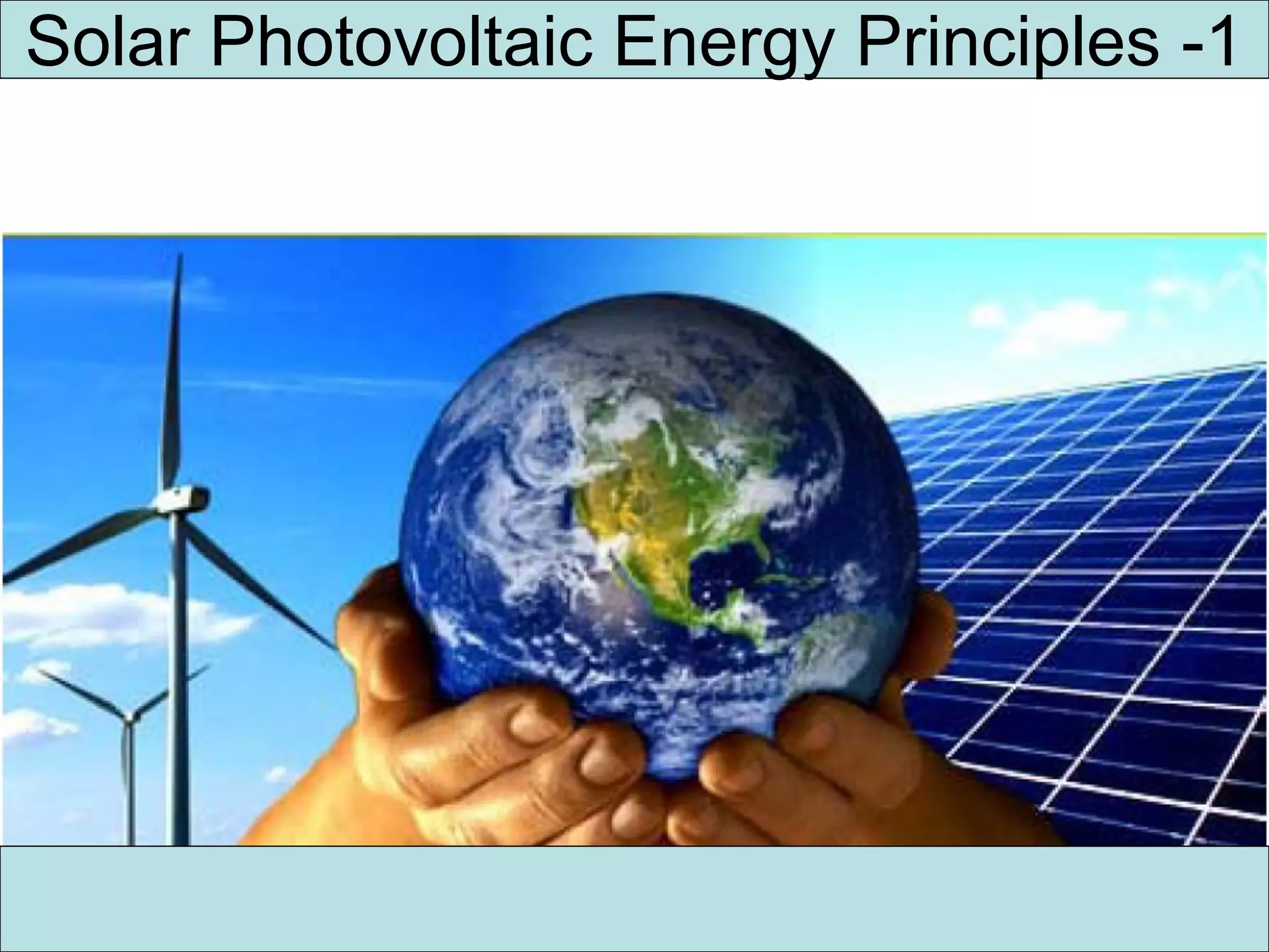 Solar photovoltaic energy principles involve converting sunlight into electricity through photovoltaic cells. The document discusses the history and development of photovoltaic technology from the 1800s to present day. It provides overviews of different photovoltaic cell technologies including crystalline silicon, thin film technologies, and multi-junction cells. Tables and diagrams are presented on topics like currently available cell efficiencies, market shares of cell technologies, area requirements for different module types, and the components that make up photovoltaic systems.