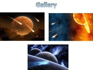 2. Comets have icy nuclei and tails that form when they are close to the Sun. Short-period comets originate in the Kuiper belt or its associated scattered disc beyond Neptune's orbit. Longer-period comets originate from the hypothesized spherical Oort cloud of icy bodies in the outer Solar System.