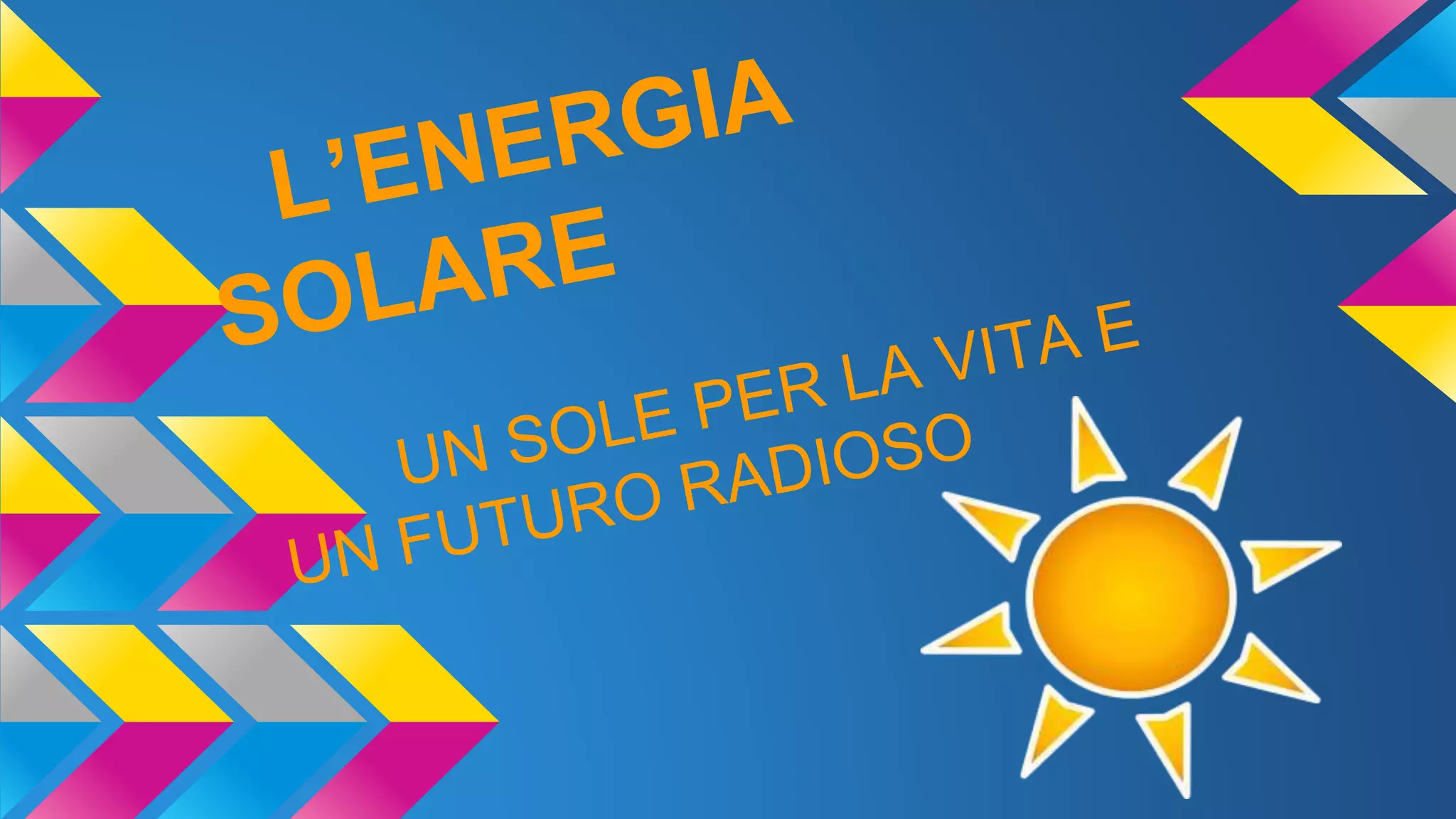 L'energia solare è una fonte alternativa, pulita e rinnovabile, ottenuta dall'irraggiamento del sole e ha il potenziale di soddisfare il fabbisogno mondiale. Nonostante i vantaggi come l'assenza di inquinamento, presenta anche sfide legate alla sua variabilità, che dipende da fattori atmosferici e geografici. Innovazioni come i pannelli solari sulla luna, gli alberi urbani che producono energia e i pannelli fotovoltaici liquidi rappresentano potenziali sviluppi futuri nell'uso dell'energia solare.