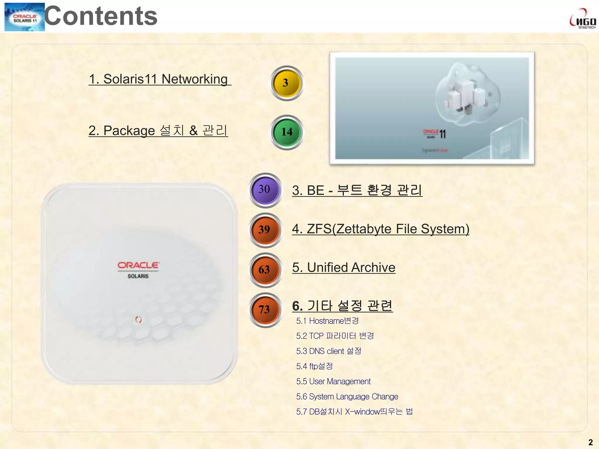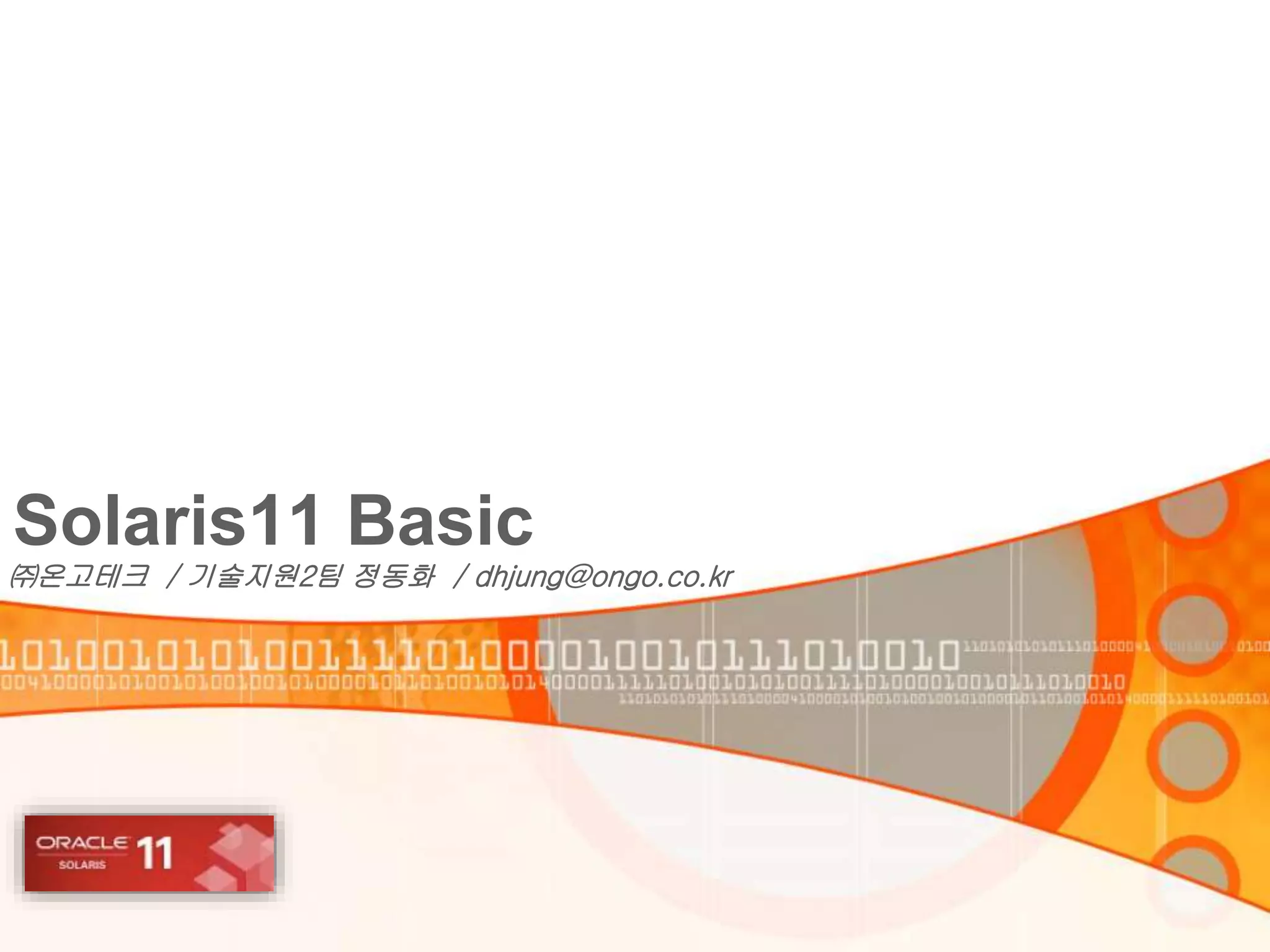 • 언어 패키지는 설치하되, 수정하는 방법은 solairs10까지는 /etc/default/init에서 LANG변수를 바꾸어 주었지만 Solaris11에서는 /etc/default/init파일이 read-only이다.