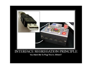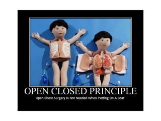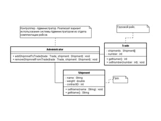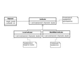 Документ описывает основные принципы объектно-ориентированного программирования (ООП) по методологии SOLID, включая принцип единственной обязанности, открытости/закрытости, подстановки, изоляции интерфейса и инверсии зависимостей. Также рассматриваются шаблоны проектирования, такие как информационный эксперт, создатель, контроллер и концепции слабой связанности, сильного зацепления и полиморфизма. Основное внимание уделяется правильному распределению обязанностей между объектами для повышения гибкости и уменьшения зависимости внутри систем.