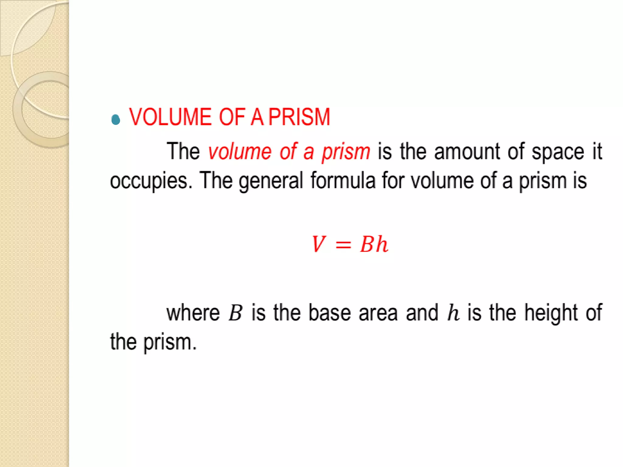 The presentation mentions the importance of properties and formulas relating to prisms, though specific content is not provided.
