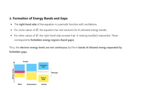 #16 The Kronig-Penny model simplifies the study of energy bands in solids by using a periodic potential, providing insights into the formation of allowed and forbidden energy states.
