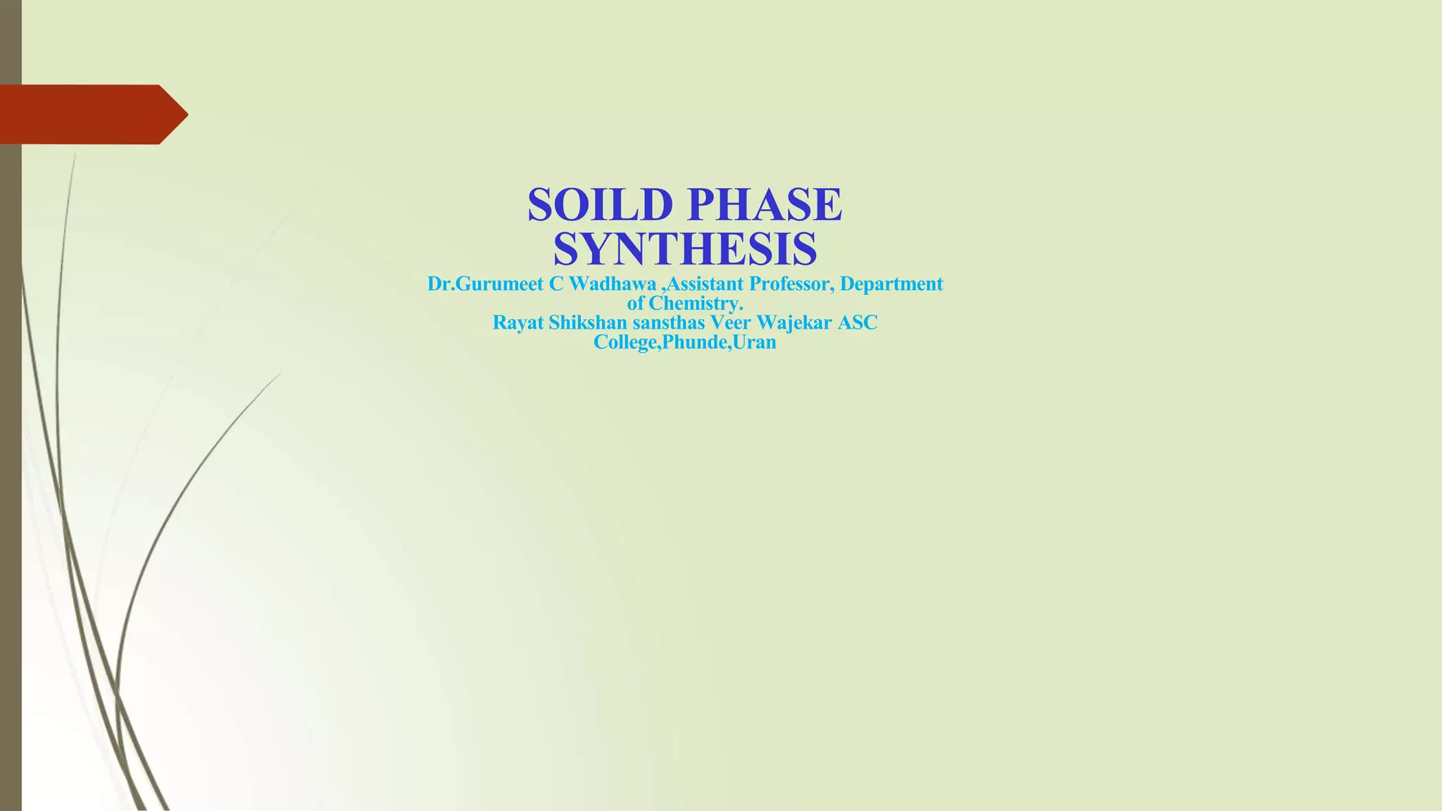 The document provides an overview of solid phase synthesis. It describes how solid phase synthesis involves coupling reagents to an inert solid support to perform multi-step organic synthesis. The key steps include attaching the starting material to a resin via a linker, performing sequential reactions on the bound intermediate, then cleaving the final product from the resin. The Merrifield method from 1963 pioneered this technique by automating the synthesis of peptides on an insoluble polystyrene resin, enabling efficient purification and the potential for parallel reactions.