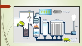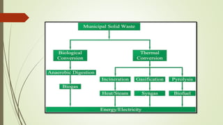 The document discusses various techniques for processing solid waste including incineration, baling, shredding, compaction, and separation of materials. The goals of processing are to improve waste management efficiency, recover useful materials like paper, plastic and metals, and recover energy through processes like incineration. Specific processing methods covered include mechanical volume reduction through compacting, chemical reduction through incineration, size reduction through shredding and grinding, and component separation techniques like air separation, magnetic separation and screening. The document also discusses drying and dewatering of waste, biochemical conversion through anaerobic digestion, and landfilling as a disposal method.
