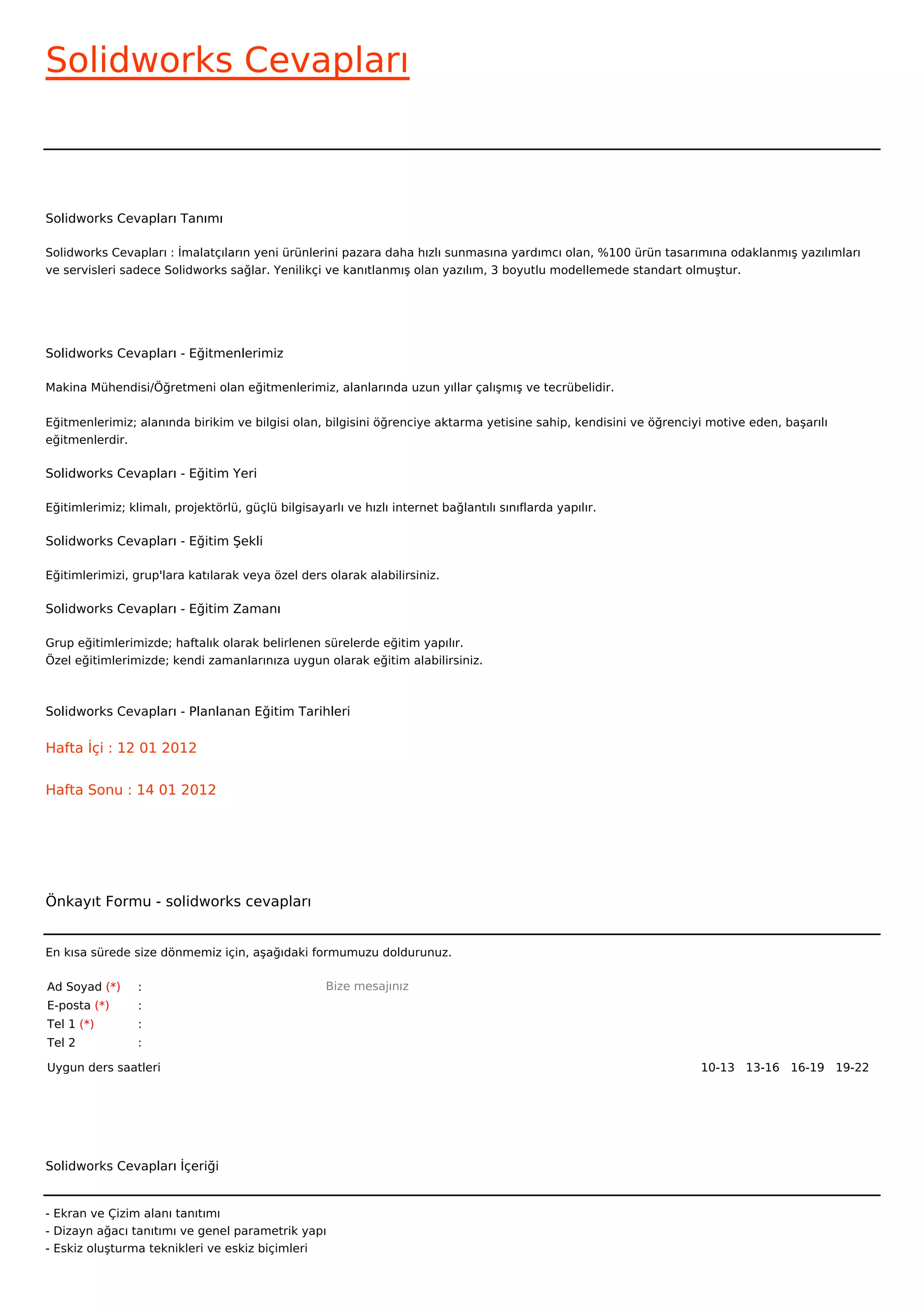 Solidworks Cevapları - Planlanan Eğitim Tarihleri