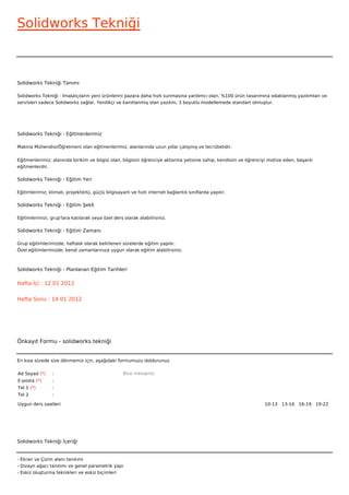 Solidworks Tekniği - Planlanan Eğitim Tarihleri