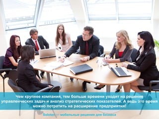 Soloten предлагает мобильное решение для управления предприятием, позволяющее эффективно отслеживать ключевые показатели и прогнозировать изменения в реальном времени. Приложение интегрируется с другими системами управления, что повышает эффективность работы компании. Основатель Дмитрий Слиньков подчеркивает, что их разработки способствуют увеличению производительности сотрудников и снижению издержек.