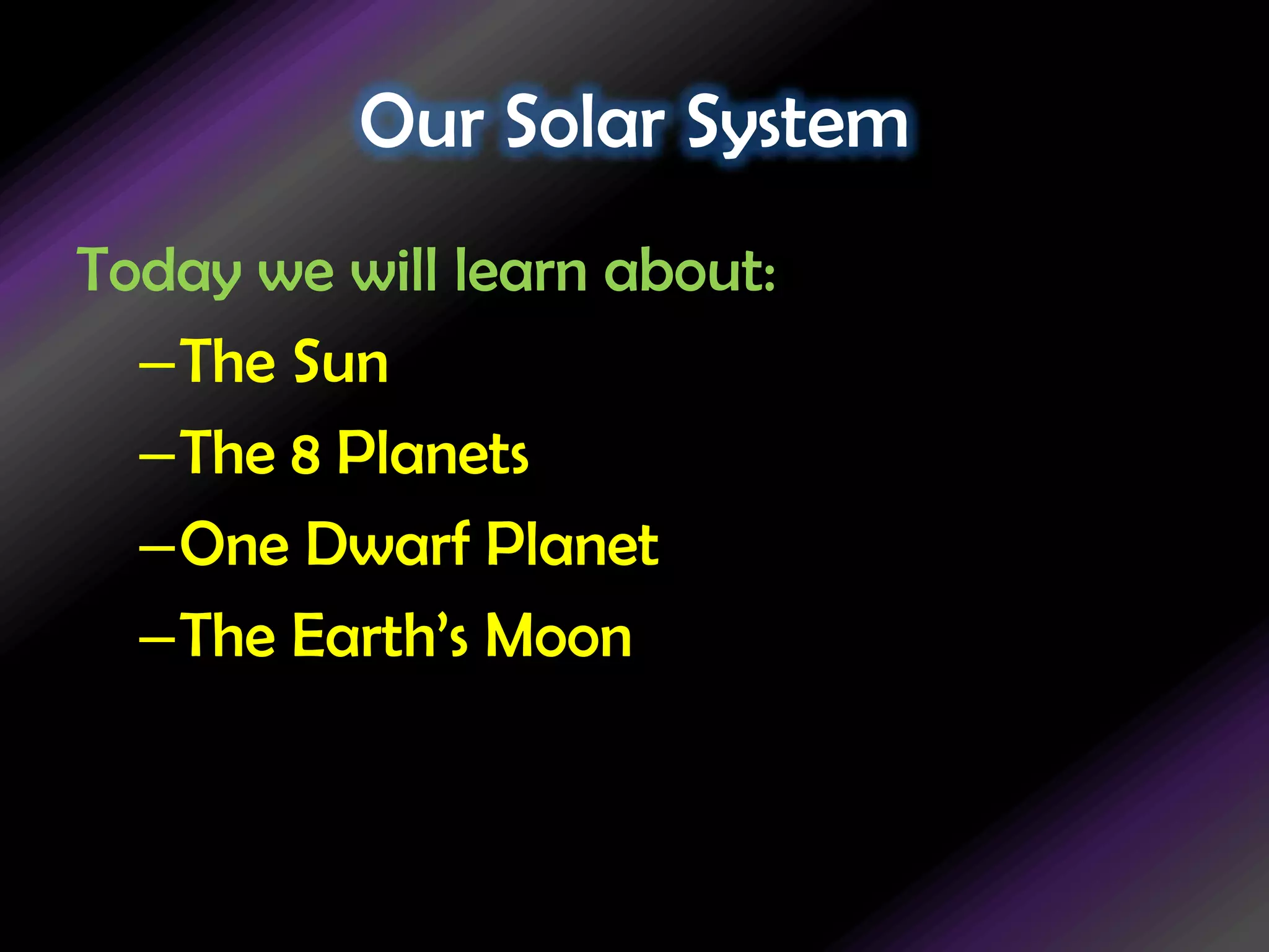 The Solar System consists of the Sun and eight planets that orbit around it, as well as one dwarf planet. The Sun is at the center and is much larger than Earth. The planets are Mercury, Venus, Earth, Mars, Jupiter, Saturn, Uranus, and Neptune. Earth is the only planet known to support life. Many planets have moons, and some like Saturn have rings. Pluto was reclassified as a dwarf planet in 2006 due to its small size and irregular orbit.