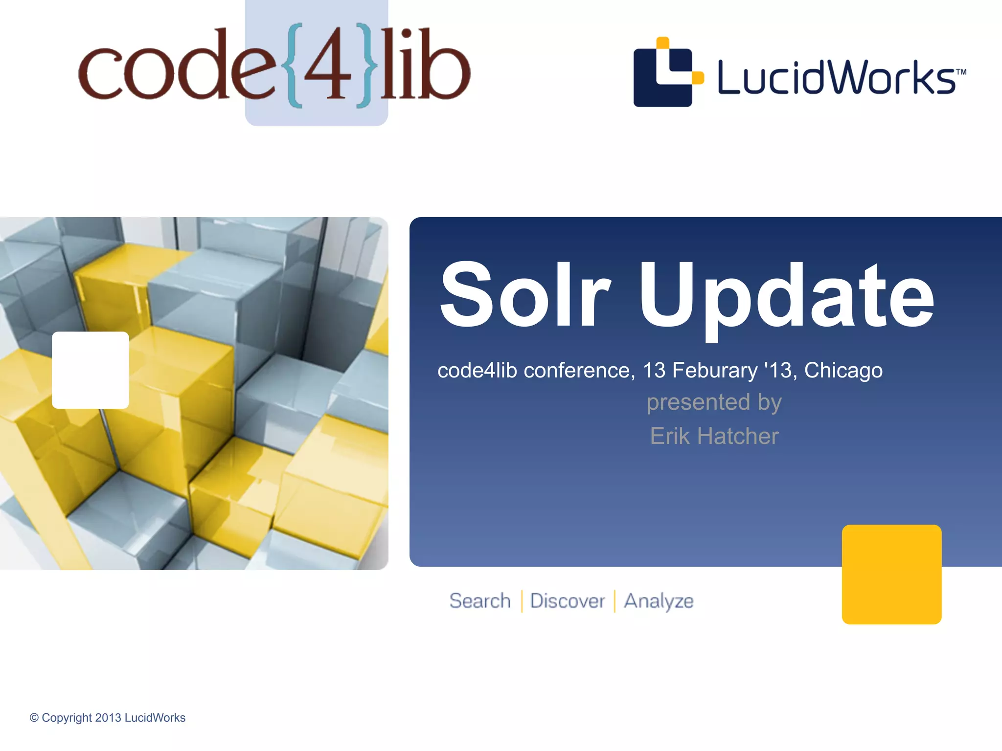 The document outlines the key features and enhancements introduced in Solr 4, such as SolrCloud, direct spell checking, pivot facets, and improved indexing performance. It discusses advancements in flexibility, scoring, and real-time capabilities, providing developers with crucial information for leveraging the latest Solr functionalities. Additionally, the presentation emphasizes the significance of new update processors and transaction logs for more efficient document handling.
