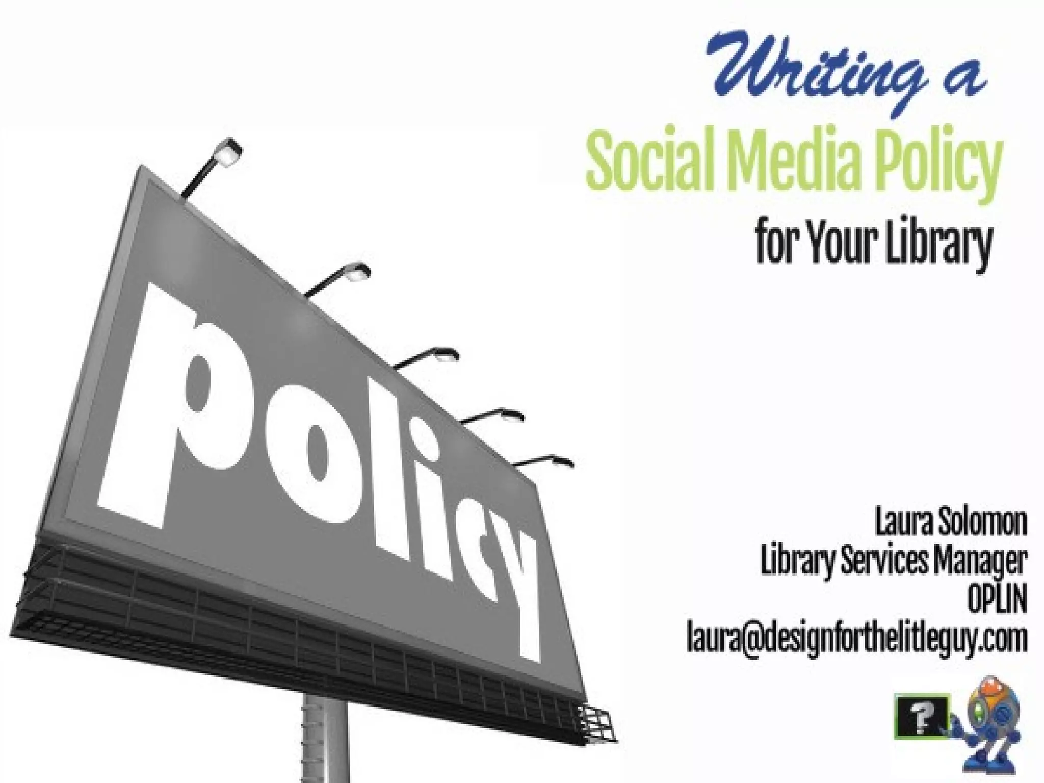 The document provides guidance on using social media effectively for libraries. It begins with an overview of common ways libraries can fail at social media, such as not having clear goals or metrics to measure success. It then discusses how to avoid these pitfalls by planning strategically with SMART goals that are specific, measurable, achievable, realistic and timed. Both quantitative and qualitative metrics are important to track, including engagement, reach and sentiment. The document emphasizes measuring the right metrics and not solely focusing on numbers. It also provides examples of effective social media goals and policies from other libraries.