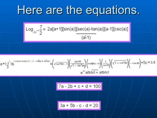 The document provides the equation of a conic section and asks to determine the area bounded by the conic section, the x-axis, y-axis, and the line y=12. It involves solving a system of equations to find values for variables in the conic equation, then using these values to graph the circle and calculate the bounded area. The area is found to be 66.9027 square units.